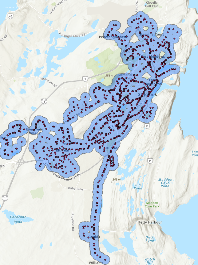 Happy City St. John’s reached out to us to help them with this project. We are humbled that we were invited to help with their first mapping / GIS project. More projects are potentially in the pipeline so expect to see more with this partnership. Working with other not-for-profits and community assisting organizations is one of the core concepts we strive to adhere to.