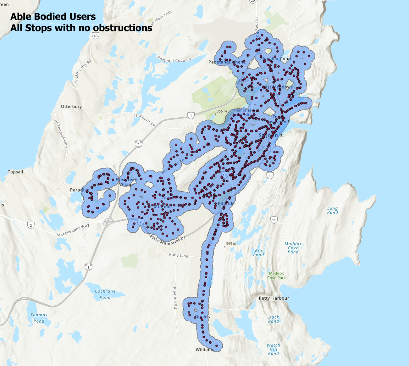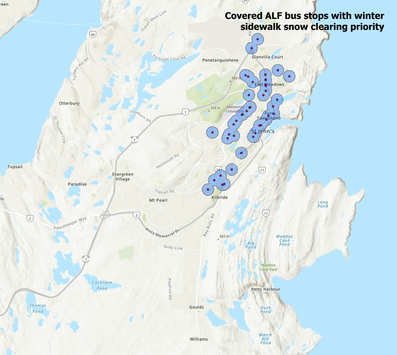 The City of St. John’s provided us with some GIS data from their LIS department. This included their online map centre core Representational State Transfer (REST) service data for sidewalk clearing priority, geospatially accurate 5cm/px aerial mapping for links and routes not accurately tracked by Metrobus, and some other useful elements.